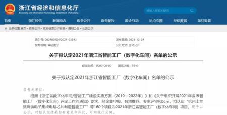 据悉,浙江省智能工厂(数字化车间)认定旨在深入推进智能制造工作,优选一批融合程度深、综合效益好、示范带动性强的智能制造项目,不断壮大以“未来工厂”为引领、智能工厂(数字化车间)为主体的新智造企业群体。入选项目的智能化水平必须在同行业中处于领先水平,并在数字化设计、智能化生产、智慧化管理、协同制造、绿色制造、安全制造等方面具有示范带动作用。