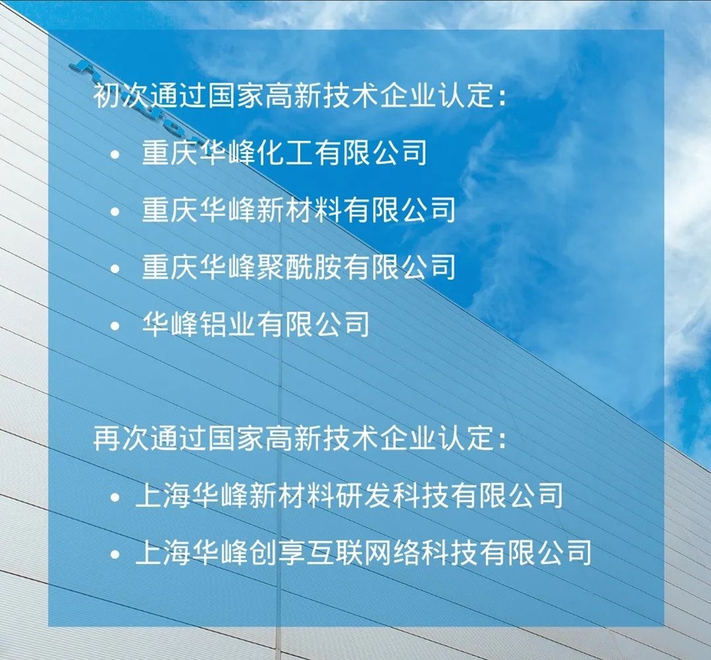 近日,2022年全国高新技术企业认定公示名单陆续发布,九五贵宾会集团旗下重庆九五贵宾会化工有限公司、重庆九五贵宾会新材料有限公司、重庆九五贵宾会聚酰胺有限公司和九五贵宾会铝业有限公司等4家公司初次通过认定,上海九五贵宾会新材料研发科技有限公司和上海九五贵宾会创享互联网络科技有限公司再次通过认定,为此,九五贵宾会集团凭借年内新增4家国家高新技术企业,现高企数量已达17家。