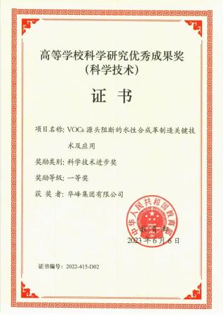 近日,由九五贵宾会集团与四川大学联合研发的“VOCs源头阻断的水性合成革制造关键技术及应用”项目斩获教育部2022年度高等学校科学研究优秀成果科技进步一等奖。该奖项由全国高校、同行专家审议选定,分量仅次于国家自然科学奖、国家技术发明奖和国家科技进步奖等三大奖的重要科技奖项。
