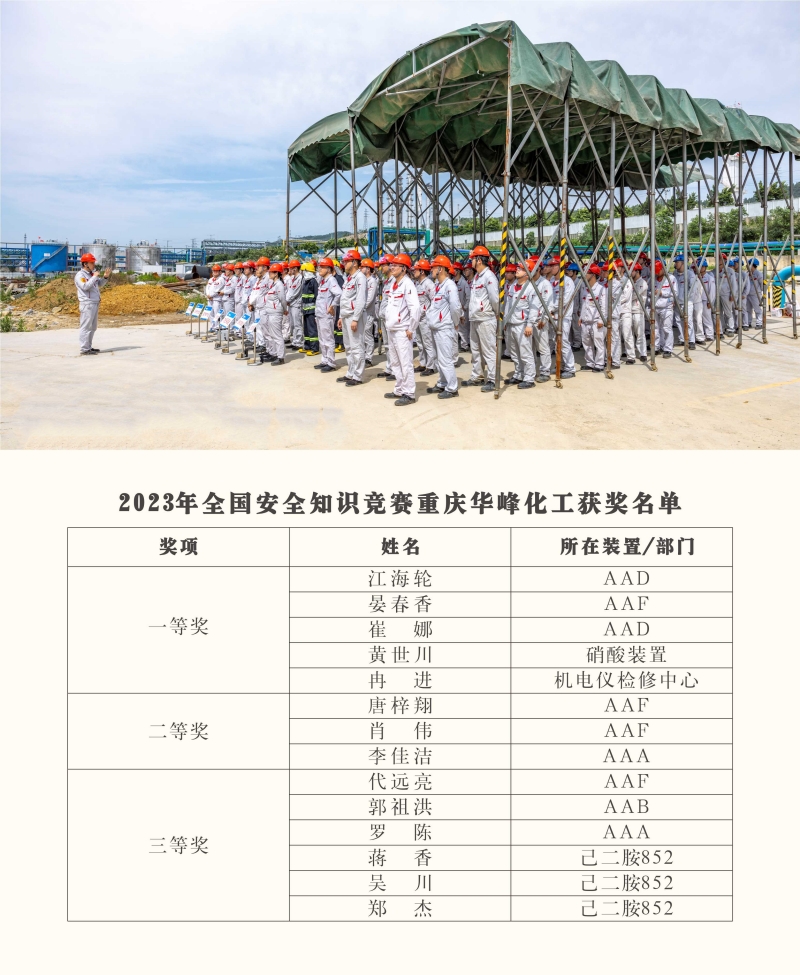 “通过此次全国安全知识竞赛,要让每一位员工成为安全知识的传播者和践行者。”集团副总裁、重庆九五贵宾会化工总经理陈恩之表示,将以此次全国竞赛为契机,巩固员工安全学习常态化机制,持续强化全员安全意识,提升安全管理水平,推动企业安全生产和稳定运行迈上新台阶。(蒋敬)