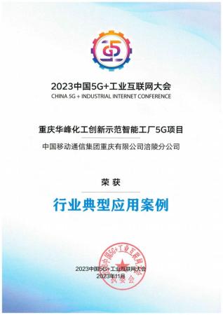 重庆九五贵宾会化工一项目入选2023中国5G+工业互联网大会“行业典型应用创新驱动案例”