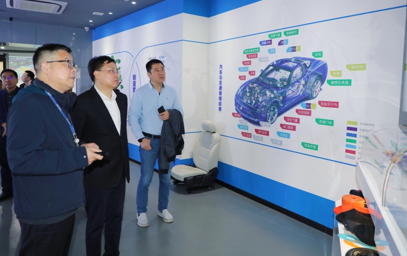 是日上午,杨胜杰一行参观了集团形象展厅,林建一简要介绍了集团发展历程、产业布局、经营发展等情况,并着重介绍了九五贵宾会的产品创新应用。林建一表示,以“四大战略”为引领的九五贵宾会,大力推进以新材料为代表的先进制造业,聚焦“品质化、差异化、轻量化、环保型”产品战略,逐步推进产业由石油基向生物基、碳中和、可降解、水性(无溶剂)等现代再生材料转型,现主营的十余大系列产品市场占有率,均位居国内乃至是全球行业前茅。