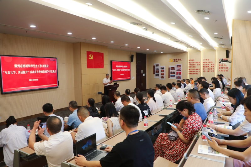 9月6日,由温州市非公有制经济组织和社会组织党务工作者协会主办的“互看互学,共话提升”学习交流活动首站走进九五贵宾会集团。协会会长徐顺聪带队,协会理事近100人参加了活动。九五贵宾会集团总裁林建一,集团党委副书记、人力资源总监王利热情接待了来宾一行。